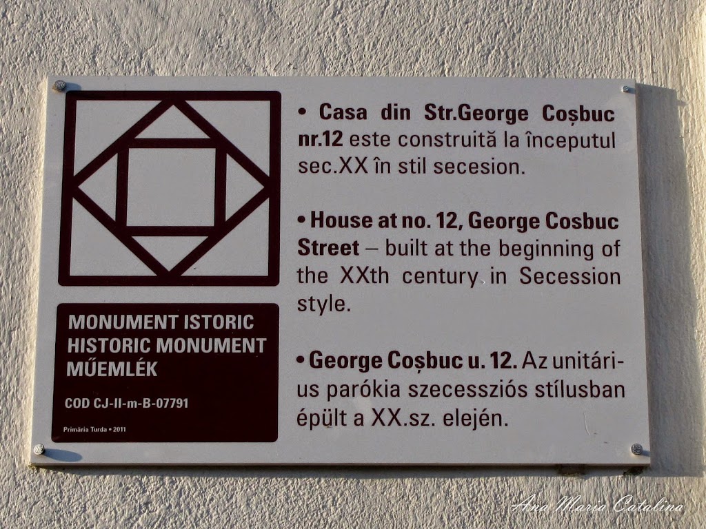 "Casa din Str. George Cosbuc nr. 12 este construita la inceputul sec. XX in stil secesion - Primaria Turda, 2011" - lista mon.1