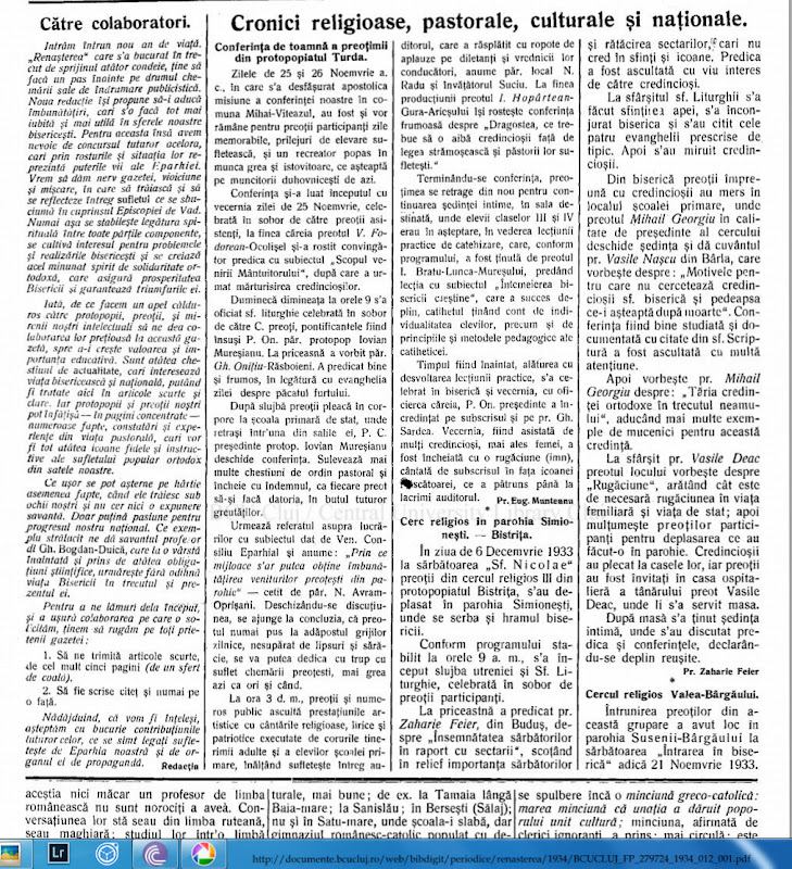 - Cronici religioase, 1934 ...Iovian Muresianu - Conferinta de toamna a preotimii din protopopiatul Turda - documente.bcucluj, pag.3
