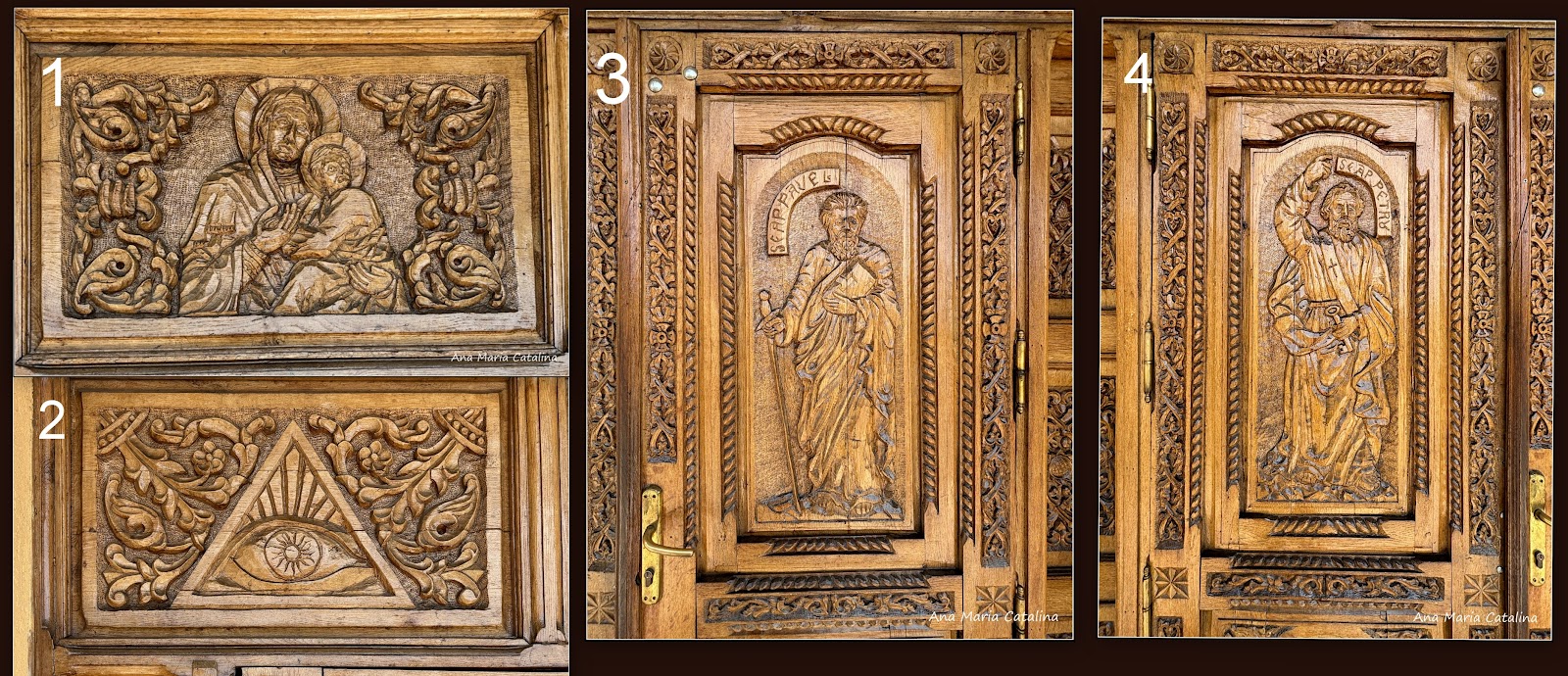 📍 Poarta credinței sculptată în lemn – Detalii iconografice